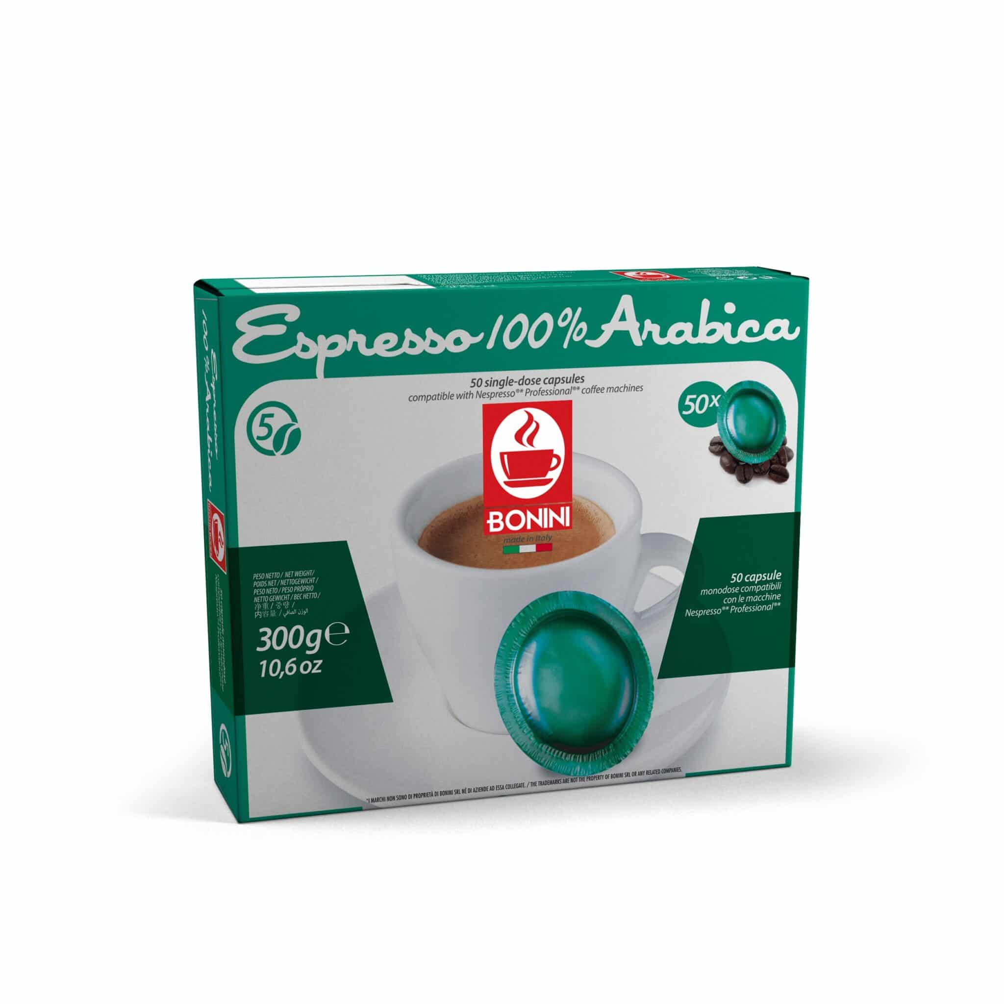 Balení obsahuje 50 kapslí kompatibilních s profesionálními kávovary systému Nespresso® Pro (300g) (plochá kapsle).