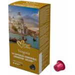 Wenecja to włoskie miasto, do którego najchętniej jeżdżą zakochani. Zachwycają się między innymi Mostem Westchnień czy Canal Grande. Jeżeli też chcesz przez chwilę poczuć niepowtarzalną atmosferę Wenecji, to polecamy Ci kawę inspirowaną właśnie tym miejscem. Na pewno polubisz jej harmonijny smak i subtelny aromat. W jej zapachu można wyczuć delikatne nuty palonego drewna. Kapsułki są kompatybilne z systemem Cremesso-Delizio®. Po zaparzeniu na powierzchni powstaje gęsta i kremowa pianka. Zachęcamy do spróbowania! Kawa w kapsułkach VENEZIA charakteryzuje się jedwabistą słodyczą smaku w połączeniu z powoli uwalnianymi nutami palonego drewna. Stanowi wyważoną mieszankę najwyższej jakości szlachetnych w smaku odmian ziaren Arabiki z tymi nadającymi jej charakteru.