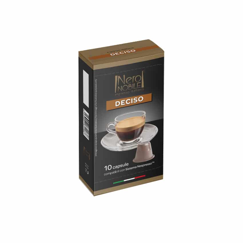 Jeżeli najbardziej na świecie lubisz smak tradycyjne włoskiej kawy, która jest intensywna i esencjonalna, a jednocześnie ma łagodny aromat, to DECISO NeroNobile kapsułki do Nespresso, będą dla Ciebie najlepszym wyborem. W opakowaniu znajdziesz 10 kapsułek, które z pewnością zaspokoją oczekiwania nawet największych koneserów włoskiej kawy. Kapsułki są kompatybilne z najpopularniejszymi modelami ekspresów Nespresso. Teraz już zawsze będziesz mógł zaczynać dzień od doskonałej kawy, którą przyrządzisz w kilka chwil.