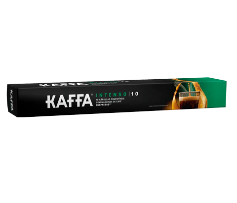 Opakowanie zawiera 10 kapsułek z kawą paloną i mieloną (50g) kompatybilnych z systemem Nespresso. Jedną z najbardziej wyjątkowych kaw jest Kaffa Intenso. Intenso to mieszanka składająca się z w 20% z ziaren Arabiki oraz w 80% z ziaren Robusty. Charakteryzuje się kremową konsystencją, zrównoważonym smakiem i umiarkowanym aromatem. Już od pierwszego łyku tej kawy można poczuć jej subtelną moc i wyrazisty aromat. Kawa pochodząca z Portugalii z pewnością podbije serca kawoszy.