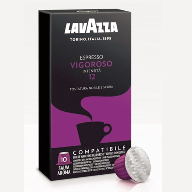 Kawa w kapsułkach Lavazza Espresso Vigoroso powstała z połączenia ziaren kawowca Arabiki oraz Robusty pochodzących z upraw w Ameryce Południowej. Ziarna kawy były palone w wysokich temperaturach dla osiągnięcia naparu o mocnym charakterze, intensywnym i kremowym smaku oraz długo wyczuwalnym karmelowym posmaku. Lavazza Espresso Vigoroso to kawa stworzona specjalnie z myślą o wielbicielach bardzo mocnych kaw o szlachetnym i głębokim smaku. Mieszanka została stworzona na bazie ziaren kaw z brazylijskich plantacji. W skład tej kompozycji wchodzą gatunki Arabika i Robusta. Kawa posiada bardzo kremową konsystencję oraz wyrazisty smak. Kapsułki kompatybilne z systemem Nespresso® pozwalają na bardzo szybkie przygotowanie klasycznego espresso w Twoim ekspresie ciśnieniowym. W jego smaku można poczuć delikatne nuty karmelu. Warto jest spróbować tego nietypowego połączenia.