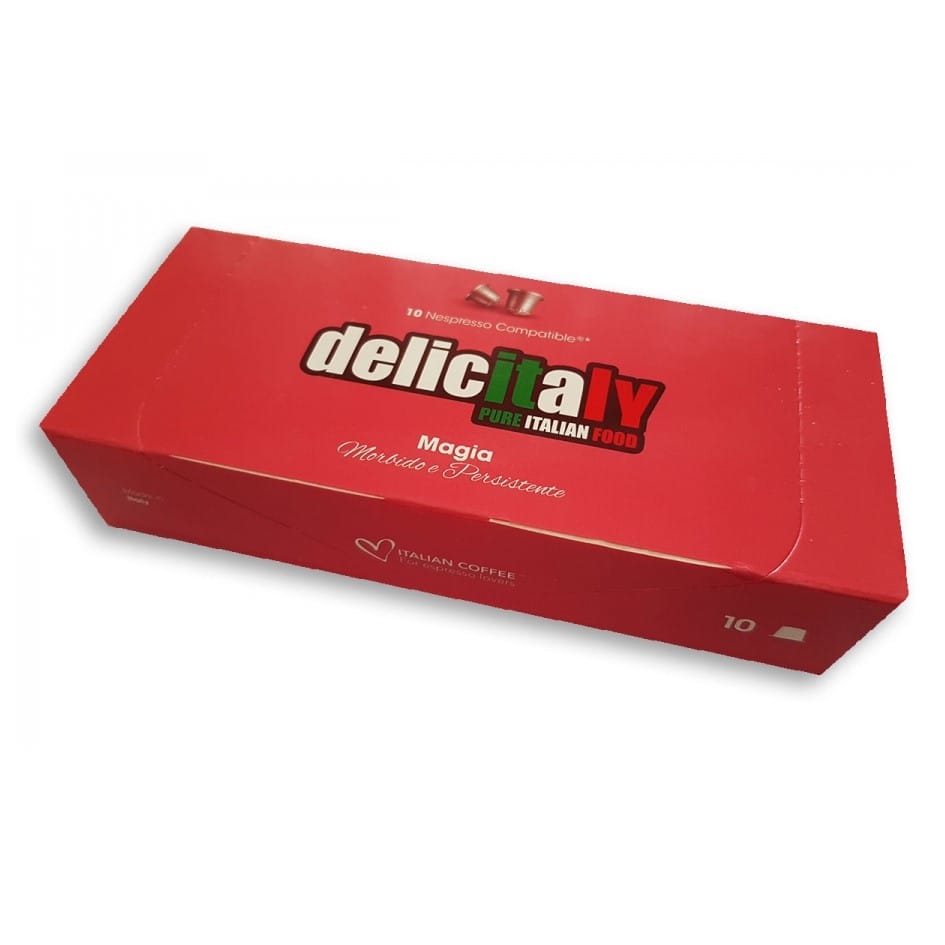 Nie wyobrażasz sobie dnia bez filiżanki kawy? My też nie! Tym razem proponujemy Ci Magię, czyli wysokiej jakości ziarna Arabiki w kapsułkach kompatybilnych z systemem Nespresso®, z których błyskawicznie przygotujesz zachwycający napar w ekspresie ciśnieniowym. Arabika jest doskonałym połączeniem, bo z jednej strony ma bardzo zrównoważony smak, a z drugiej, charakteryzuje się delikatnym aromatem i niską zawartością kofeiny. Można sięgnąć po nią praktycznie o każdej porze dnia. Delikatny posmak czekolady sprawia, że może ona stanowić doskonały popołudniowy deser. Nasza nowa mieszanka”Magia” jest w 100% oparta na ziarnach Arabiki z Brazylii. Ma gładki i słodki smak z nutą czekoladową. Przeznaczona do parzenia w ekspresach na kapsułki typu Nespresso*, każda porcja kawy mielonej zapakowana jest w specjalne hermetyczne kapsułki, co umożliwia zachowanie pełnych właściwości i walorów kawy, gwarantując wyśmienity smak i aromat nawet po upływie wielu miesięcy.