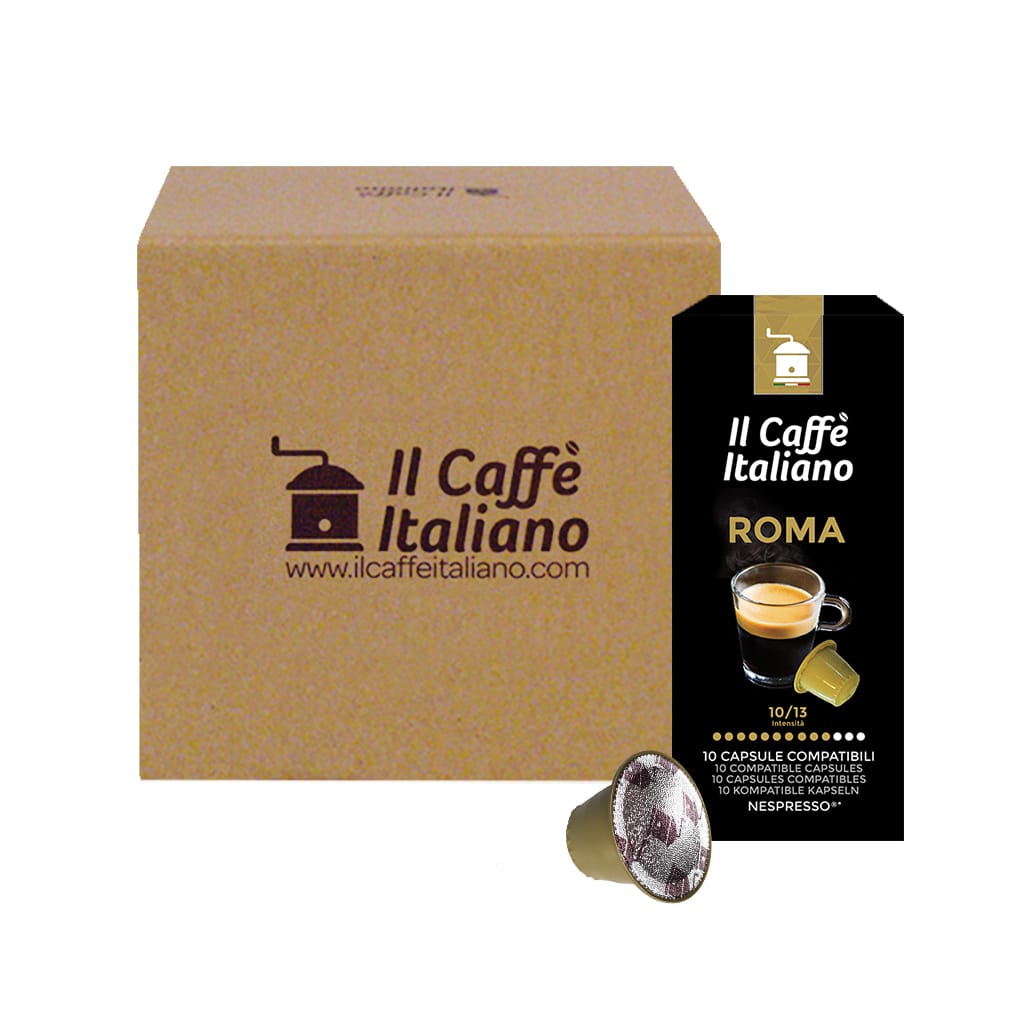 Rzym to jedno z miast stanowiących wizytówkę Włoch. Jest kojarzony przede wszystkim z antycznymi zabytkami, takimi jak Kaplica Sykstyńska czy Bazylika św. Piotra. Po intensywnym zwiedzaniu dobrze jest sięgnąć po wyśmienitą kawę, na przykład Romę. Mieszanka ziaren została zamknięta w kapsułkach kompatybilnych z systemem Nespresso®. Można z nich przygotować zarówno tradycyjne, włoskie espresso, jak i łagodniejsze w smaku lungo. Roma ma łagodny aromat i smak z nutami drewna, orzechów laskowych oraz czekolady. Kawa w kapsułkach ROMA to zrównoważona kompozycja średnio palonych ziaren kawy. Roma ma złożony i długo utrzymujący się słodki smak o nutach drewna, orzechów laskowych i czekolady.