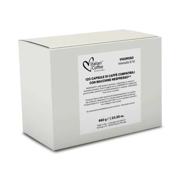 Kapsułki Italian Coffee kompatybilne z systemem Nespresso produkowane są we Włoszech, a jak wskazuje sama nazwa kawy, „Vigoroso” po włosku oznacza energiczny. To określenie doskonale oddaje jej niezwykły smak. Taki, który jest w stanie dodać energii i sił do działania nawet po nieprzespanej nocy. Jest odpowiednia do picia rano i po południu, ale lepiej unikać jej wieczorem.