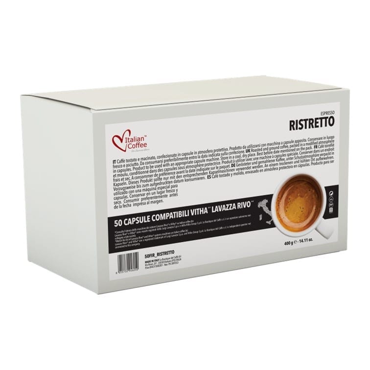 Kawę w kapsułkach Ristretto charakteryzuje mocny smak stworzony z myślą o koneserach, którzy kochają zredukowane, ciemne espresso o gęstej konsystencji. W jej składzie znajdują się najwyższej jakości ziarna Robusty z najlepszych plantacji kawy w Ugandzie i Indiach. Po zaparzeniu otrzymujemy prawdziwą włoską krótką kawę o intensywnym smaku i niezwykle kremowej konsystencji. Uważa się, że ristretto jest mniej gorzkie w smaku od espresso i zawiera mniej kofeiny choć i tak daje przysłowiowego „kopa”.