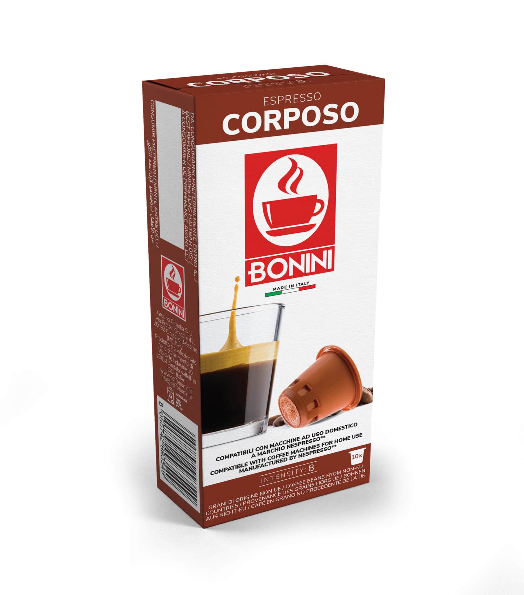 Bonini Corposo je výnimočne krémová a sýto sfarbená káva s výraznou arómou a silnou a plnou chuťou.