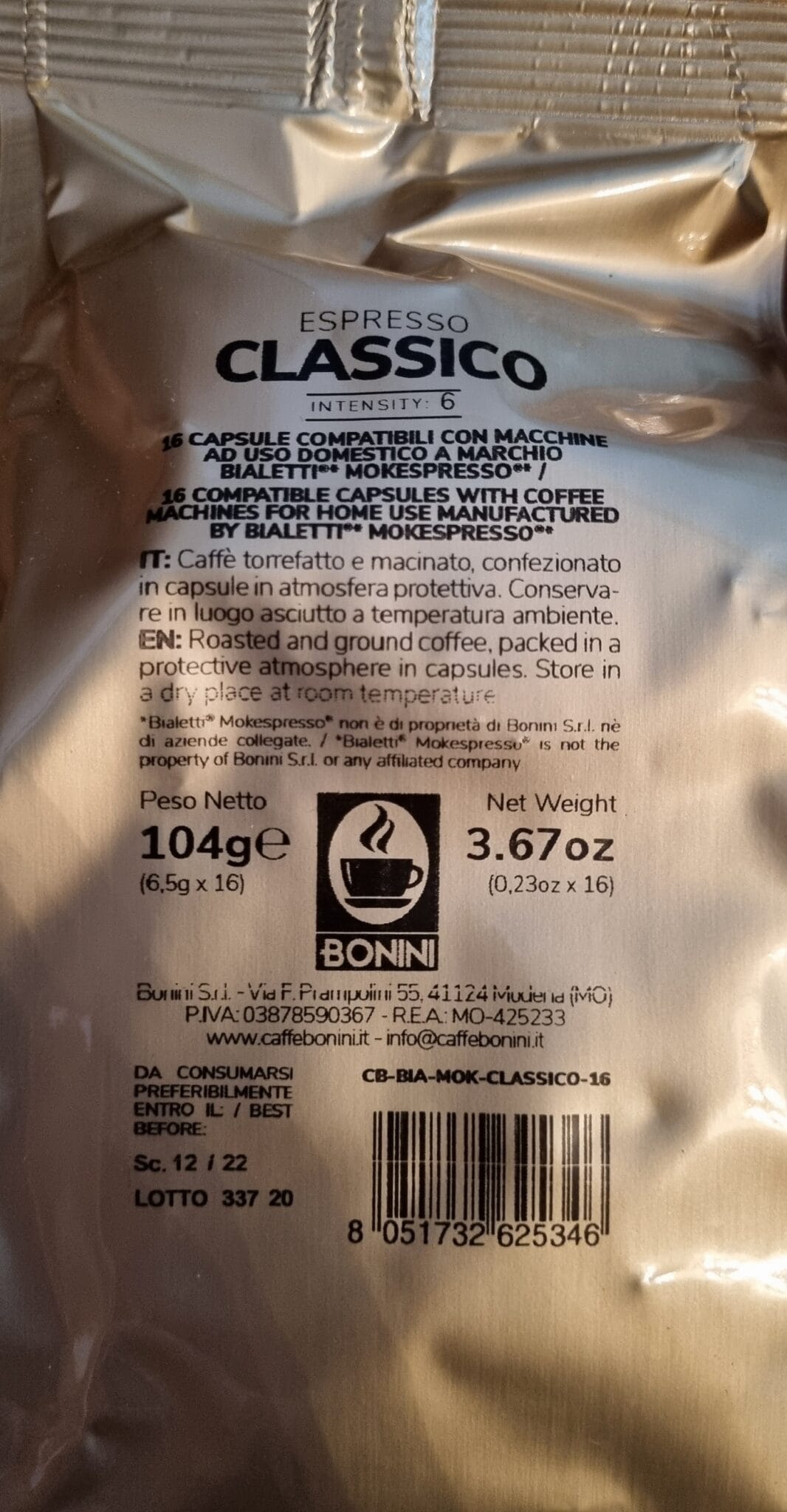 16 kompatibilných kávových kapsúl pre systém BIALETTI CAFFÈ D’ITALIA.