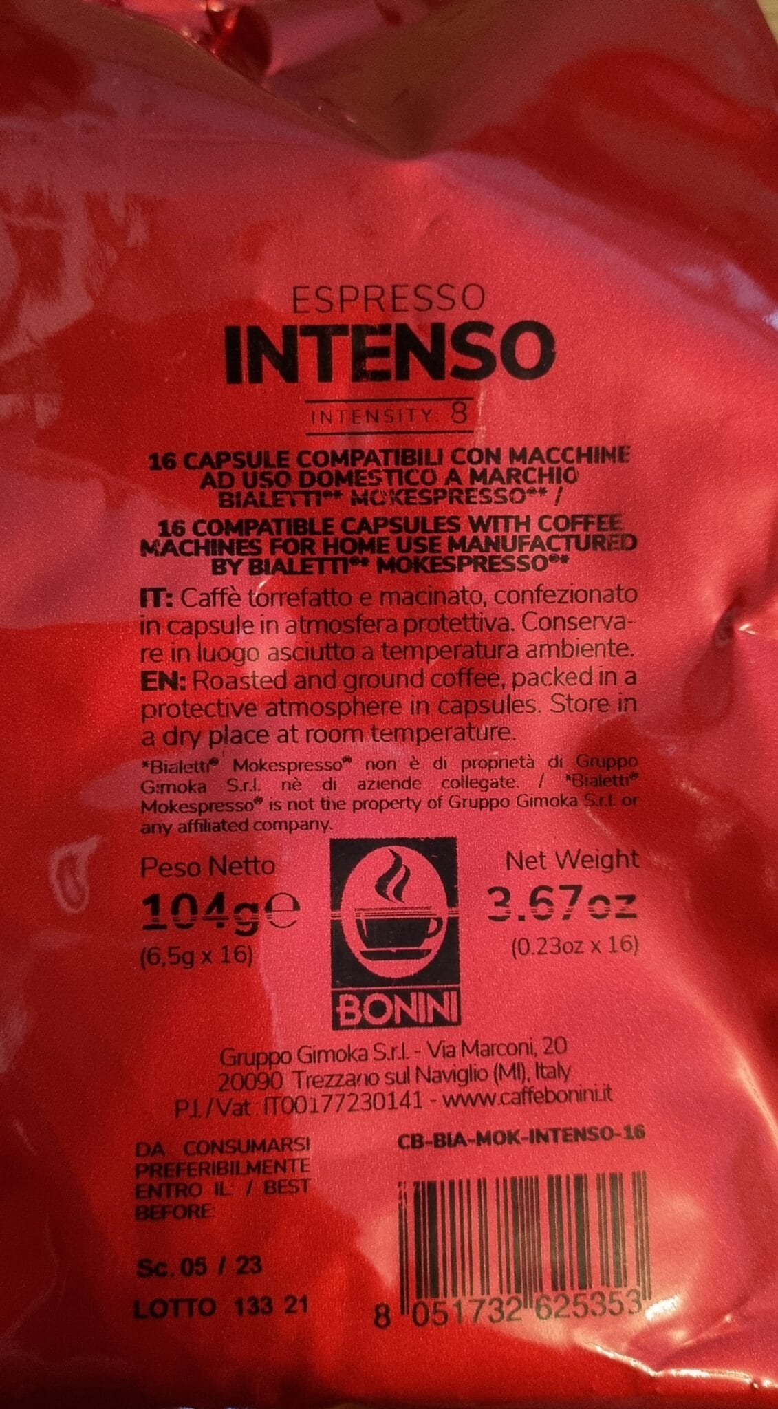 Kávu Intenso si pripravíte z kapsúl kompatibilných so systémom Bialetti Caffe D’Italia®.